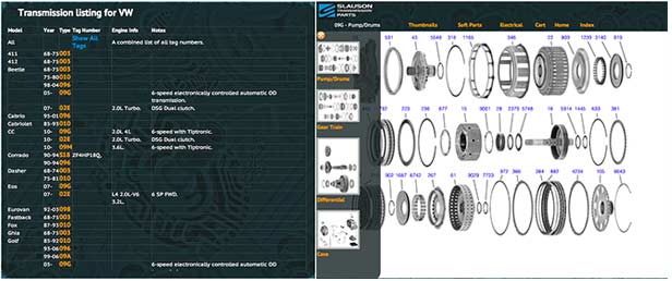 Just begin by choosing either the "search by make" or "search by model" option. When prompted, make selections providing further information such as year, or engine size, which will lead you to an exploded view of the transmission you're working on.